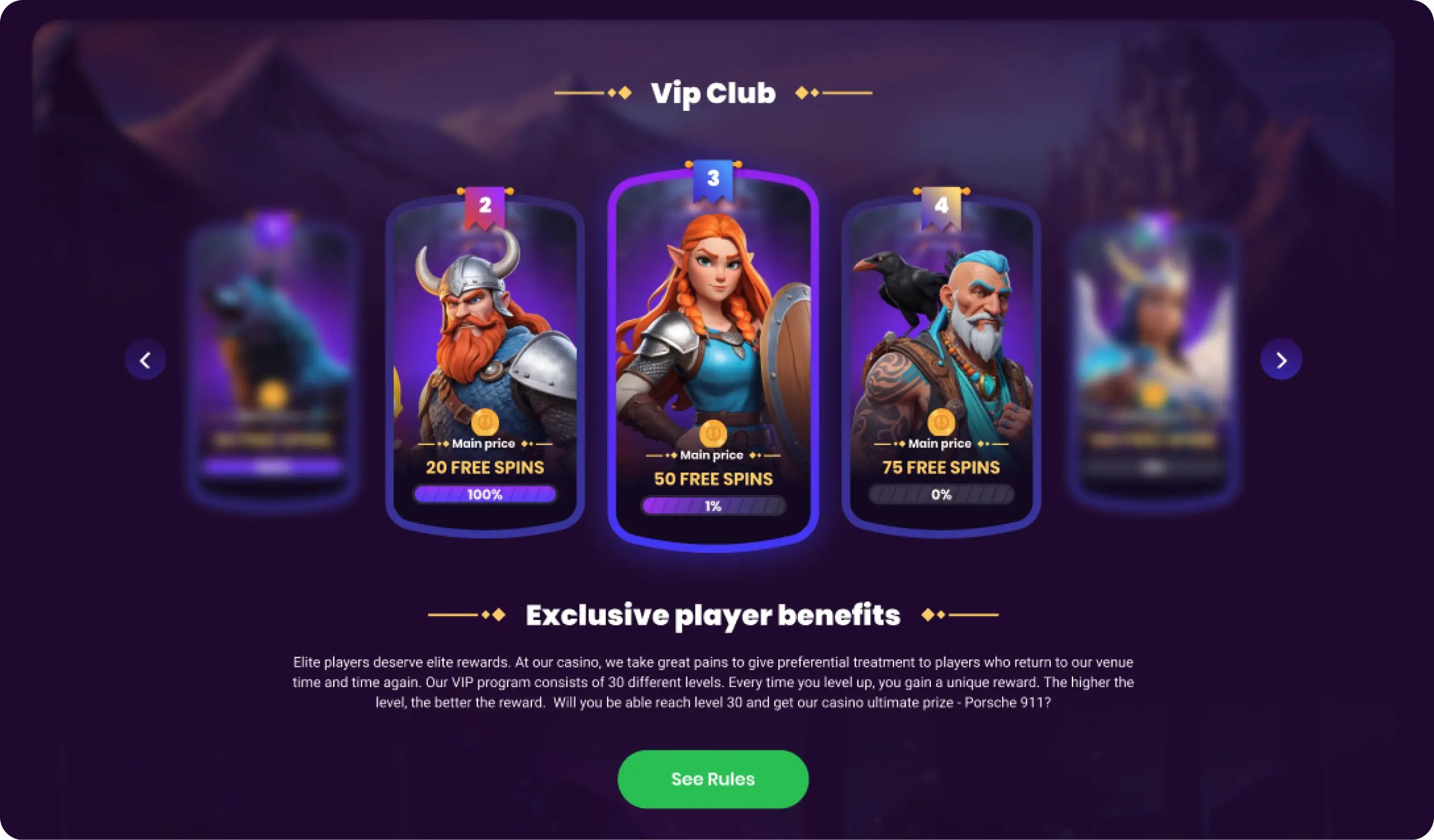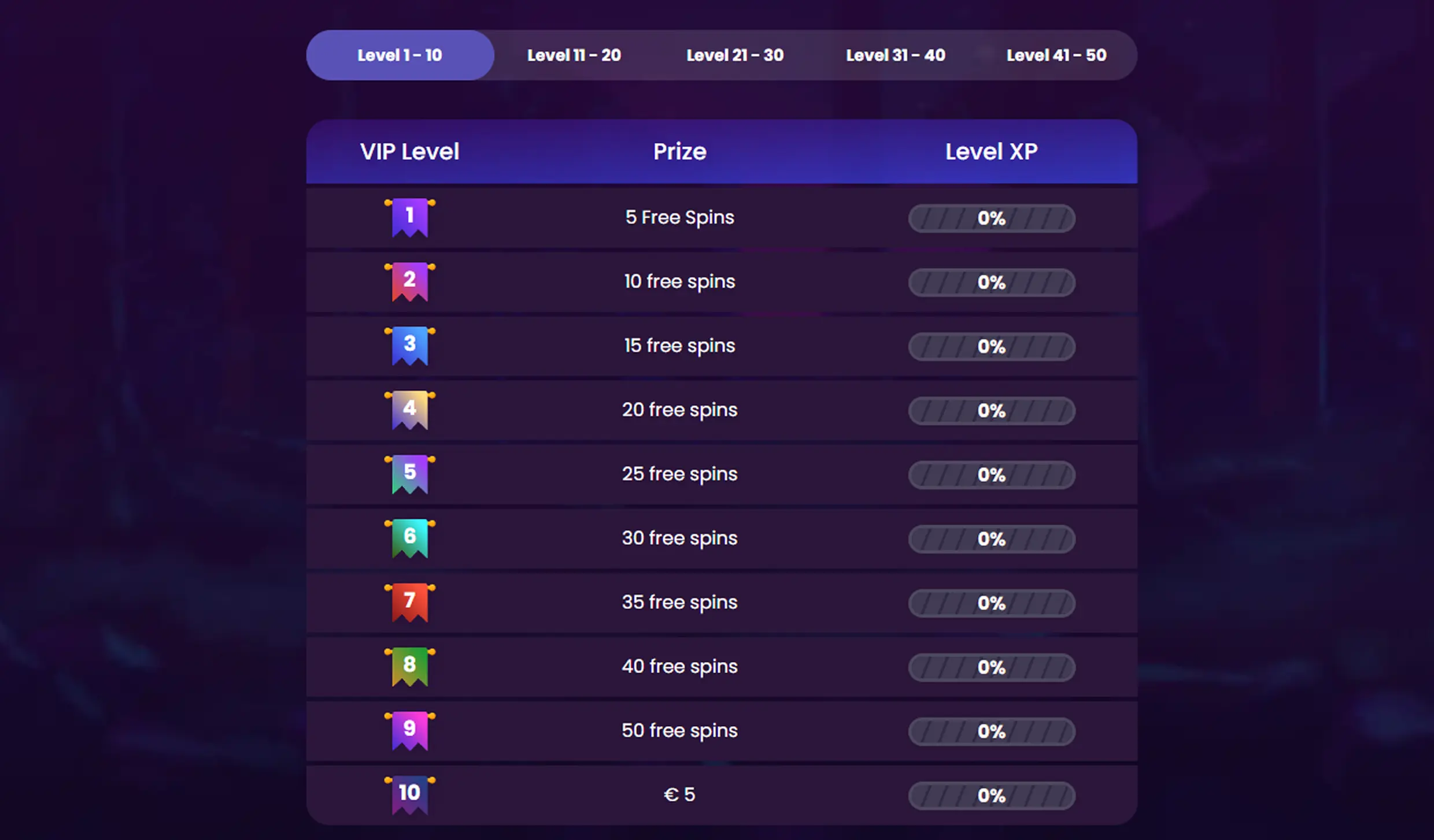 - 50-tier VIP loyalty program with unlockable bonuses