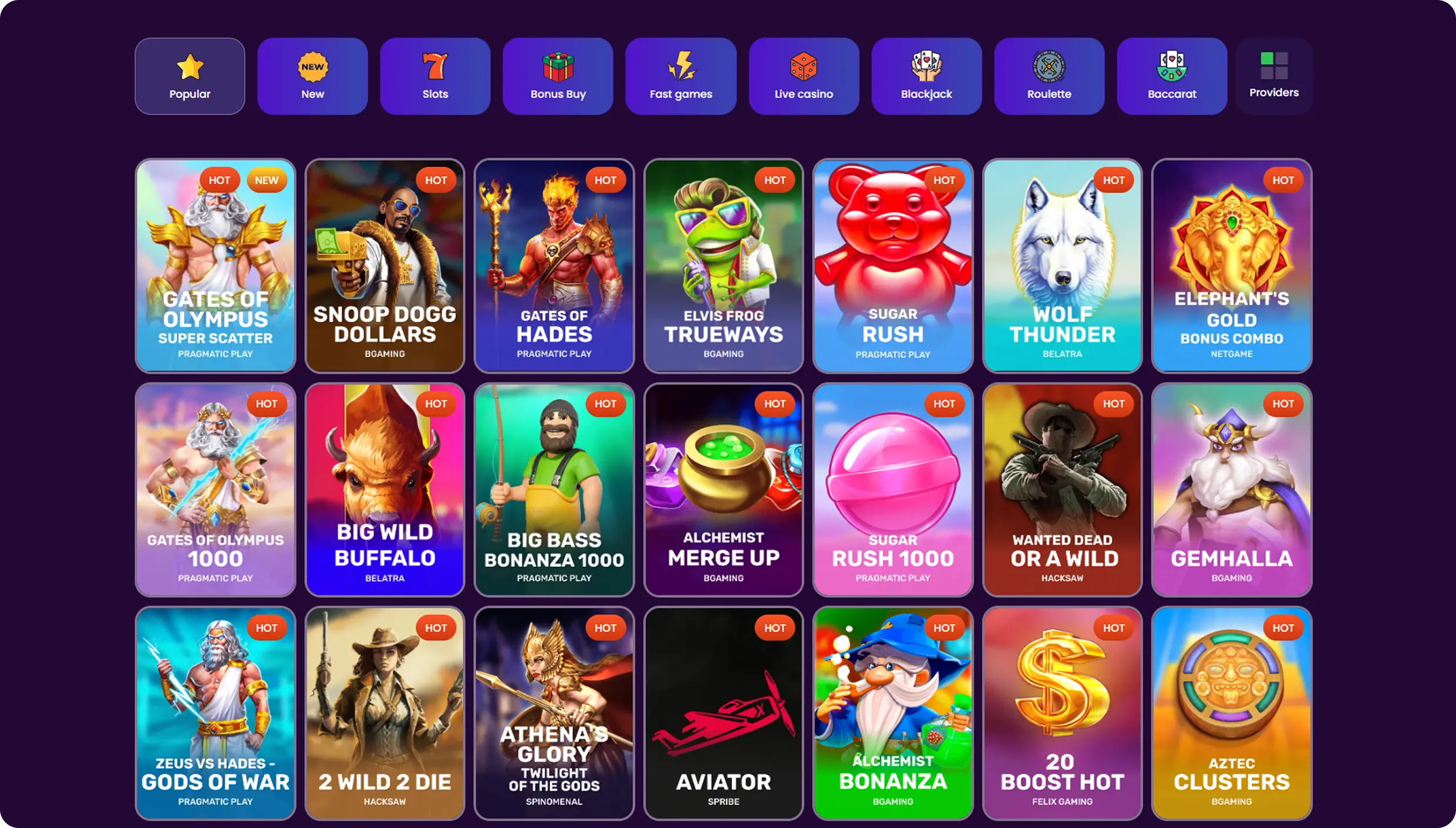 - Large variety of games and providers